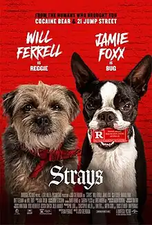 Strays is a 2023 American comedy film directed by Josh Greenbaum and written by Dan Perrault. The film follows an abandoned dog (voiced by Will Ferrell) who teams up with several strays (voiced by Jamie Foxx, Isla Fisher, and Randall Park) to get revenge on his abusive owner (Will Forte); Harvey Guillén, Rob Riggle, Brett Gelman, Jamie Demetriou, and Sofía Vergara also star.