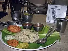 Street food, as in other areas of India, are popular in Chennai,[1] despite the common belief in India that street food is unhealthy.[2] The idly sambhar is a popular dish, which is served as breakfast or dinner. Apart from regular South Indian street food, the city's streets are also filled with several North Indian street food outlets, most of them established by North Indian migrants themselves.[3] Gujarati[3] and Burmese[4] are also available. Street food in Chennai is so popular that a game had developed based on the TV show The Amazing Race where contestants have to follow clues to street-food spots in the city.[5][6]