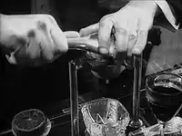 Eisenstein's editing is rapid, even compared to other Soviet filmmakers of the era. Strike has an average shot length of 2.5 seconds, less than half that of a typical Hollywood film.[17] Dissolves, traditionally used to indicate the passage of time between shots, are used instead as a visual effect. In some scenes, the aspect ratio is dynamic, with masks in front of the camera being added or removed to change the framing of a shot. The film also makes use of multiple exposures and iris shots.[15][18]