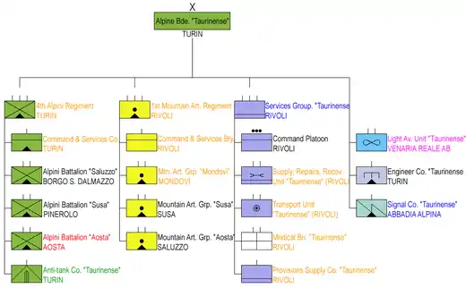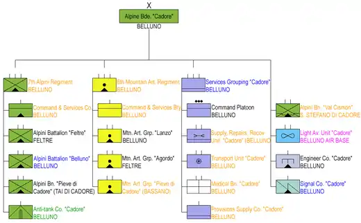 - ↑ F. dell'Uomo, R. Puletti (1998). L'Esercito Italiano verso il 2000 - Vol. Primo - Tomo II. Rome: SME - Ufficio Storico. p. 57.