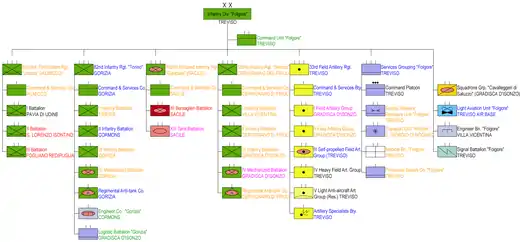 - ↑ F. dell'Uomo, R. Puletti (1998). L'Esercito Italiano verso il 2000 - Vol. Primo - Tomo II. Rome: SME - Ufficio Storico. p. Appendice XVIII.