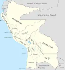The Peru-Bolivian Confederation was divided into 3 states; North Peru, South Peru and the Bolivian Republic.[1]