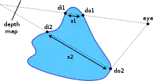 One method of estimating this distance is to use depth maps,[3] in a manner similar to shadow mapping. The scene is rendered from the light's point of view into a depth map, so that the distance to the nearest surface is stored. The depth map is then projected onto it using standard projective texture mapping and the scene re-rendered. In this pass, when shading a given point, the distance from the light at the point the ray entered the surface can be obtained by a simple texture lookup. By subtracting this value from the point the ray exited the object we can gather an estimate of the distance the light has traveled through the object.