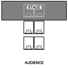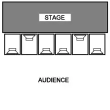 | Small system: Two pole-mounted mid/high frequency PA speaker cabinets and two small subwoofer cabinets with 15- or 18-inch subwoofers (Note: this would be used in club where jazz, acoustic music, country music or soft rock is played) | Small club with capacity for up to 300 people |