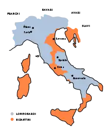 The Popes needed to quickly reinvent their relationship to secular authority. Even though the neighboring Lombard kings were no longer heretical, they were often hostile. The more powerful and more distant Franks, which had by and large been allies of the Empire, were an alternative option as potential protectors. In 739, Gregory III sent a first embassy to Charles Martel seeking protection against Liutprand, King of the Lombards, but the Frankish strongman had been Liutbrand's ally in the past and had asked him in 737 to ceremonially adopt his son. The Papacy had more luck with the latter, Pepin the Short, who succeeded Charles in October 741 together with his elder brother Carloman (who withdrew from public life and became a monk in 747). Pope Zachary was pressed into action by the final Lombard campaign against the exarchate of Ravenna, whose fall in mid-751 sealed the end of Byzantine rule in Central Italy. He was in contact with the Frankish ruling elites through the venerable Boniface, Archbishop of Mainz, and other clerics such as Burchard of Würzburg and Fulrad. In March 751 he moved to depose Childeric III, the last Merovingian King, following which Pepin was dedicated as King of France in Soissons. In 754, Zachary's successor Pope Stephen II undertook the first-ever papal visit north of the Alps, met Pepin in Ponthion and anointed him as king at Saint-Denis on July 28, setting the template for later rites of coronation of French Kings. Stephen further legitimized the Carolingian dynasty by also anointing Pepin's sons Charles and Carloman, by prohibiting the election of any non-descendant of Pepin as king, and by proclaiming that "the Frankish nation is above all nations".[37] This in return prompted the Donation of Pepin in 756, cementing the Popes' rule over the Papal States over the next eleven centuries. Subsequently, in 773–774, Pepin's son and successor Charlemagne conquered the Lombard Kingdom of Italy.