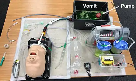 - ↑ Lin, Li-Wei; Huang, Chi-Chieh; Ong, Jiann Ruey; Chong, Chee-Fah; Wu, Nai-Yuan; Hung, Shih-Wen (2019-11-15). "The suction-assisted laryngoscopy assisted decontamination technique toward successful intubation during massive vomiting simulation". Medicine. 98 (46): e17898. doi:10.1097/MD.0000000000017898. ISSN 0025-7974. PMC 6867733. PMID 31725637.