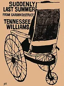 Suddenly Last Summer is a one-act play by Tennessee Williams, written in New York in 1957.[1] It opened off Broadway on January 7, 1958, as part of a double bill with another of Williams' one-acts, Something Unspoken (written in London in 1951).[2]: 52 The presentation of the two plays was given the overall title Garden District, but Suddenly Last Summer is now more often performed alone.[3] Williams said he thought the play "perhaps the most poetic" he had written,[2]: 86 and Harold Bloom ranks it among the best examples of the playwright's lyricism.[4]