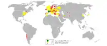 Franz Karl Achard opened the world's first beet sugar factory in 1801, at Kunern, Silesia (now Konary, Poland).[9] The idea to produce sugar from beet was soon introduced to France, whence the European sugar beet industry rapidly expanded. By 1840, about 5% of the world's sugar was derived from sugar beets, and by 1880, this number had risen more than tenfold to over 50%.[12] In North America, the first commercial production started in 1879 at a farm in Alvarado, California.[13][14] The sugar beet was introduced to Chile by German settlers around 1850.[14]