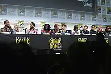 Suicide Squad held a panel at the 2015 San Diego Comic-Con International, with stars Smith, Robbie, Courtney, Davis, and Kinnaman among those who appeared. A trailer intended to be exclusive to the event premiered but was leaked online, with Warner Bros. responding by stating they would not release an official version.[92] However, the following day, Warner Bros. released an official version, stating: "Warner Bros. Pictures and our anti-piracy team have worked tirelessly over the last 48 hours to contain the Suicide Squad footage that was pirated from Hall H on Saturday. We have been unable to achieve that goal. Today we will release the same footage that has been illegally circulating on the web, in the form it was created and high quality with which it was intended to be enjoyed. We regret this decision as it was our intention to keep the footage as a unique experience for the Comic-Con crowd, but we cannot continue to allow the film to be represented by the poor quality of the pirated footage stolen from our presentation."[93]