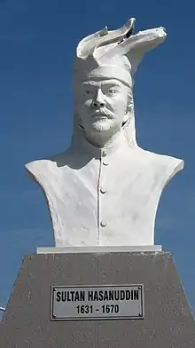 Sultan Hasanuddin (Sultan Hasanuddin Tumenanga Ri Balla Pangkana; (12 January 1631 – 12 June 1670) was the 16th Ruler of The Sultanate of Gowa as Sombaya Ri Gowa XVI from 1653 to 1669. He was proclaimed as Indonesian National Hero on 6 November 1973.[1] The Dutch called Sultan Hasanuddin "the Rooster of the East" as he was described as aggressive in battle.[2][3]