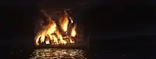 Passengers who survived the initial explosion had to risk their lives in the icy spring runoff of the Mississippi or burn with the boat.[7] Many died of drowning or hypothermia. Some survivors were plucked from the tops of semi-submerged trees along the Arkansas shore. Bodies of victims continued to be found downriver for months, some as far as Vicksburg. Many bodies were never recovered. Most of Sultana's officers, including Captain Mason, were among those who perished.[8]