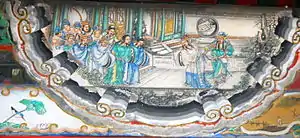 In 210, Liu Bei travelled to Jing (京; present-day Zhenjiang, Jiangsu) to meet Sun Quan and request to govern Nan Commandery. During this time, Zhou Yu secretly wrote to Sun Quan, urging his lord to lure Liu Bei to Wu Commandery (around present-day Suzhou, Jiangsu), distract him with luxuries and women, and keep him separated from his generals Guan Yu and Zhang Fei.[4] Sun Quan, however, rejected Zhou Yu's idea because he considered Cao Cao to be a much greater threat to him than Liu Bei, so it would be better for him to maintain his alliance with Liu Bei.[5]