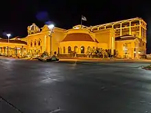 Construction began in early July 1999.[5][6] In September 1999, seven construction workers suffered minor injuries when a 32-foot concrete slab, part of the second floor, collapsed.[6] The 10-story hotel tower was topped off on March 22, 2000, with an American flag placed atop the building. The $190 million project was half complete up to that point.[7][4] Suncoast officials began interviewing potential employees in early June 2000. Many applicants had worked at the Desert Inn, which was preparing to close later that year. In late August 2000, the Suncoast had less than 50 remaining job positions to fill, out of a total of 1,800.[8] An opening date of September 1, 2000, was initially targeted,[9][10] but was pushed back 11 days due to construction delays and building inspections, thus postponing employee training.[11][12] The project was built at a cost of $185 million.[13]