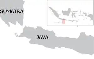 During the evening heavy rain squalls reduced visibility and prevented any decisive movement by either side, but on 25 January the French squadron had rounded St. Nicholas Point at the northwestern tip of Java and was in full pursuit of Canning's ships, which had been joined by Houghton.[10] Resolu in particular was struggling to escape the advancing enemy, but Mitchell had realised the danger and was sailing to intercept the French. At 06:30 Houghton, Nonsuch and Vengeur joined with the remainder of Mitchell's force and two hours later Renaud's ships met the British line, Resolu just managing to reach safety in the shelter of the large East Indiamen despite being hit repeatedly in the latter stages of the chase.[10] For an hour the two squadrons continued a general exchange of fire at long-range, before Mitchell turned William Pitt, Houghton and Nonsuch towards the French at 09:30, the latter two both managing to hit Cybèle with destructive broadsides. Firing continued for another 18 minutes as Renaud withdrew, eventually anchoring off the island of Pulau Baby. Neither commander was keen to continue the action, Mitchell fearing that his undermanned ships would not be able to properly engage the better armed French vessels. Casualties among the French squadron are not known, but the only loss on the British ships was on Nonsuch, which had a man killed in combat with Cybèle.[11]