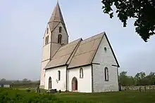 The church was originally built as the church for a large farmstead. This first church was wooden, and built during the early 12th century. A few painted remains of the church have been preserved at the Gotland Museum in Visby. They were painted by a Russian artist and the scene depicts the Last Judgement. It has been speculated whether the remains were originally parts of an iconostasis, given the Russian origin of the work, but more probably they are the remains of a ceiling.[1]