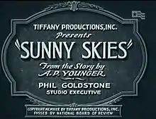 Sunny Skies is a 1930 American Pre-Code musical comedy film directed by Norman Taurog, starring Benny Rubin and Marceline Day and produced by Tiffany Pictures.[1] It is notable for a same-sex romantic subplot, involving a young man's tragically unrequited love for his football hero roommate.[2]