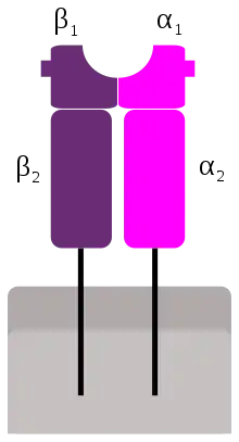 The domains have binding regions for the major histocompatibility complex class II (MHC class II) and the T-cell receptor (TCR), respectively.[7]