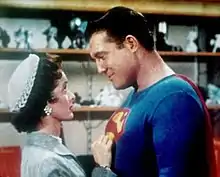The characters, Superman/Clark Kent and Lois Lane, were created by Jerry Siegel and Joe Shuster. Superman was conceived as being like the ideal Hollywood romantic hero of the time, portrayed in films by actors such as Douglas Fairbanks, Clark Gable, and Rudolph Valentino.[4] Siegel and Shuster were both fans of silent film actor Douglas Fairbanks, his films The Mark of Zorro (1920), Robin Hood (1922), and The Black Pirate (1926) became a huge influence on their writing and art on the Superman character.[5] The idea of making Superman a visitor from another planet was inspired by Edgar Rice Burroughs' John Carter of Mars stories.[6] Clark Kent's character grew out of Siegel and Shuster's own personal lives. His name is the combined names of actors Clark Gable and Kent Taylor. Clark Kent's demeanor was based on Harold Lloyd.[7] Lois Lane was inspired by actress Glenda Farrell's portrayal of the fictional reporter Torchy Blane in a series of films. Siegel took her name from actress Lola Lane. Shuster based Lois Lane's physical appearance on a model name Joanne Carter.[8] Carter later married co-creator Jerry Siegel in 1948.