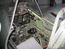 The capacity of the main fuel tanks was 48 gal for the upper tank and 37 gal for the lower, for a total internal capacity of 85 gal. Jettisonable "slipper tanks" of 30, 45 or 90 gal could be carried under the centre-section.[38] As an alternative a cylindrical 50 gal drop tank, adapted from those carried by long range Hawker Typhoons, could be carried on the fuselage bomb rack used on most Mk IXs of the Second Tactical Air Force. To further increase the combat radius some late production Mk IXs were fitted with additional internal self-sealing fuel tanks in the rear fuselage: the upper tank carried 41 gal and the lower 34 gal. When both were full this enabled a ferry range of over 1,200 miles (1,900 km), although they made the aircraft unstable in flight and only straight flight and gentle manoeuvres at low altitudes were recommended by the pilot's manual. The pilot was also warned to avoid instrument flying whenever possible.[39][40]
