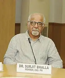 Surjit Bhalla is an Indian economist, author and columnist,[1] who was the Executive Director for India at the International Monetary Fund (IMF). He is a former member of the newly formed Economic Advisory Council to the second Modi ministry[2][3][4]
