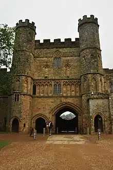 Battle Abbey and Lewes Priory were amongst England's most important monasteries in the High Middle Ages.[58] The Cistercian abbey at Robertsbridge was the third of Sussex's 'great monasteries'.[59] 1094 saw the completion of the Benedictine Battle Abbey, which had been founded by a team of monks from Marmoutier Abbey on the River Loire. The abbey was built on the site of the Battle of Hastings after Pope Alexander II had ordered the Normans to do penance for killing so many people during their conquest of England. Monks also planned out the nearby town of Battle shortly after the conquest. Around 1081, the lord of Lewes Rape, William de Warenne and his wife Gundrada formed England's first and largest Cluniac monastery at Lewes Priory. The Priory of St Pancras was the first Cluniac house in England and had one of the largest monastic churches in the country. It was set within an extensive walled and gated precinct laid out in a commanding location fronting the tidal shore-line at the head of the Ouse valley to the south of Lewes. The monks at Lewes also administered monastic cells at Etoutteville as well as the abbey of Mortemer in Normandy.[60]