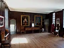 In the mid-1980s the building was squatted and used as a music venue and social centre, known as the Blue House (a decorated wall from this time is preserved within the current museum).[4] After the squatters were evicted the building's condition continued to decline. The Sutton House Society, originally known as the Save Sutton House Campaign, which was formed in March 1987, then began a campaign to rescue the building and open it to the public. Renovations were completed in 1991.[5] The building remains in use as a museum, as well as housing a café, an art gallery and a book and gift shop.[6] There is an active schools education programme at the house, together with other community programmes. Sutton House was short-listed for the 2004 Gulbenkian Prize. It is registered for the conduct of marriages.[7]