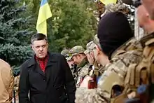 - ↑ "A new volunteer of the Ukrainian interior ministry's special battalion "Sich" embraces his relative during a ceremony in Kiev | View photo - Yahoo News Philippines". 12 November 2014. Archived from the original on 12 November 2014. Retrieved 18 May 2022.
