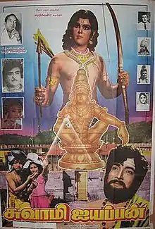 Swami Ayyappan (transl. Lord Ayyappan) is a 1975 Hindu devotional film. Directed and produced by P. Subramaniam, it was simultaneously shot in Malayalam and Tamil.[1][2] It stars Gemini Ganesan, Thikkurissy Sukumaran Nair, Master Raghu/Karan, K. Balaji, Sekhar, Srividya, Unnimary, Lakshmi, Raghavan, Rani Chandra and Vinodini. The film met with critical acclaim and became a box office success.[3] It won four Kerala State Film Awards. The film helped in popularising the shrine of Sabarimala further in Tamilnadu and other southern Indian states.