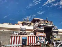 The temple priests perform the puja (rituals) during festivals and on a daily basis. Like other Shiva temples of Tamil Nadu, the priests belong to the Shaiva community, a Brahmin sub-caste. The temple rituals are performed six times a day; Ushathkalam at 5:30 a.m., Kalasanthi at 8:00 a.m., Uchikalam at 10:00 a.m., Sayarakshai at 5:00 p.m., Irandamkalam at 7:00 p.m. and Ardha Jamam at 8:00 p.m. Each ritual comprises four steps: abhisheka (sacred bath), alangaram (decoration), naivethanam (food offering) and deepa aradanai (waving of lamps) for Swaminathaswamy. The worship is held amidst music with nagaswaram (pipe instrument) and tavil (percussion instrument), religious instructions in the Vedas (sacred texts) read by priests and prostration by worshippers in front of the temple mast. There are monthly rituals like amavasai (new moon day), kiruthigai, pournami (full moon day) and sathurthi. The major festival of the temple, Vaikasi Visagam, is celebrated during the Tamil month of Vaikasi (May -June). As per Hindu legend, the celestial deity Indra worshipped Subramanyaswamy on the day of visagam star and gained strength to defeat the demon Arikesa.[3] Like other Murugan temples, the worship practises include tonsuring in the temple, ablution of the deity with sandal, panchamirtham (a mixture of five ingredients) and milk are performed by devotees. Carrying milk pots (called palkudam) and Kavadi are other common forms of worship.[9][24] A few years ago, a popular event called Subramanya Sahasranama, meaning doing archana with 1008 forms of Muruga was celebrated every month. Like in Palani Murugan temple, Vibhuti Abhishekam, the ablution of the central deity with ash is performed. The central deity with adorned with diamond Vel every Thursday.[24] The kumbabhisekam of the temple was performed on 9 September 2015.[25]