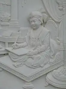 Swaminarayan's views are found in the Vachanamrut (Vacanāmṛta), the principal theological text of the Swaminarayan Sampradaya.[101] As followers believe Swaminarayan to be the manifestation of Parabrahman, or Puruṣottama, his views are considered a direct revelation of God.[102] In the Vachanamrut, Swaminarayan describes that the ultimate goal of life is moksha (mokṣa), a spiritual state of ultimate liberation from the cycle of births and deaths and characterized by eternal bliss and devotion to God.[103][104]