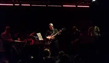 ![]() Swans performing live in Warsaw in December 2010. From left to right: Kristof Hahn on lap steel, Michael Gira on guitar, Thor Harris on percussion, Chris Pravdica on bass guitar, and Norman Westberg on guitar. Phil Puleo is seated behind the drum kit. | |