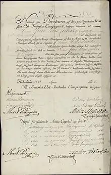 - ↑ "Svenska ostindiska kompaniets arkiv" [Swedish East India Company archive]. www.ub.gu.se (in Swedish). Gothenburg University. Retrieved 21 October 2014.
