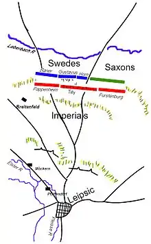 ![]() Gustavus Adolphus at the Battle of Breitenfeld | |||||||