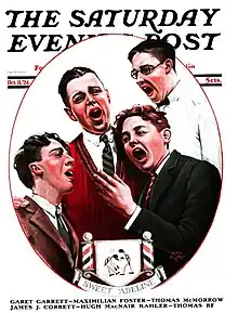 "(You're the Flower of My Heart,) Sweet Adeline" is a ballad best known as a barbershop standard. It was first published in 1903, with lyrics by Richard Husch Gerard to music by Harry Armstrong, from a tune he had written in 1896 at the age of 18. According to a 1928 newspaper story, the lyrics were inspired "by a girl who worked at the music counter of a New York department store."[1] After failing to find a publisher with the initial title, "You're the Flower of My Heart, Sweet Rosalie", according to a story the two decided a new title was in order and were inspired by a poster advertising the farewell tour of opera singer Adelina Patti.[2] It did not become a hit until it was performed in 1904 by the group The Haydn Quartet. The Haydn Quartet's version was #1 for 10 weeks in 1904, and the Peerless Quartet also hit #1 with their version in 1904, for three weeks, according to Joel Whitburn's Pop Memories.