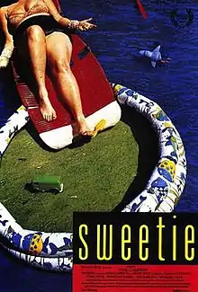 Sweetie is a 1989 Australian black comedy drama film directed by Jane Campion, and starring Genevieve Lemon, Karen Colston, Tom Lycos, and Jon Darling. Co-written by Campion and Gerard Lee, the film documents the contentious and chaotic relationships among a woman in her twenties, her parents, and her emotionally unstable sister. It was Jane Campion's first feature film. It was entered into the 1989 Cannes Film Festival[1] and won an Independent Spirit Award for Best Foreign Film in 1991.[2]