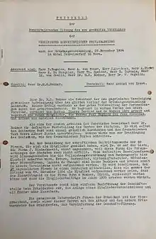 The Swiss Private Bankers Association was founded in Bern, on 29 November 1934, following the adoption of the new Federal Act on Banks and Savings Banks on 8 November 1934. The law recognised the special status of private bankers but also suggested ‘closer collaboration’ amongst them.[2] The aim of the association was to represent ‘the professional interests of private bankers’. Forty-eight banks applied to become members.[1] Its first Chairman was Max Ernst Bodmer.