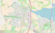 The main business and industrial areas are located to the east of the town centre, along the R132 dual carriageway. These include Balheary Industrial Park, Swords Business Campus, Swords Business Park, and the Airside campus (Business Park, Retail Park and Motor Park). These campuses separate the town centre from the residential neighbourhoods further east — Seatown, Lissenhall, Holywell and Drynam (or Drinan) — for which reason the Central Statistics Office treats the latter areas as forming a separate census town, which since 1991 it has dubbed "Kinsealy–Drinan"[27][28] and had a population of 7,526 at the 2022 census.[29] The development plan for Fingal County Council treats Kinsealy–Drinan as part of Swords.[30]