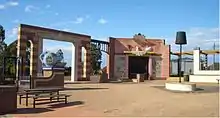 Sydenham is directly under the flight path of Sydney Airport. To deal with noise complaints from residential properties between Unwins Bridge Road and the Princes Highway, the government compulsory acquired these properties and converted them into a recreational park.[7] The park occupies a large portion of the small suburb. Sydenham Green is located on either side of Railway Road, named after the park of the same name in Sydenham, London. Two heritage buildings along Railway Road were retained, a sandstone terrace house and St Marys Church (which was later controversially demolished after a suspicious fire.[8]) In the park, a series of oversized 'living room' sculptures – lamp, chairs and fireplace pays homage to the residential houses that formerly occupied the site.