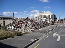 Sydenham Heritage Church after demolition, with the Post Office in the background
