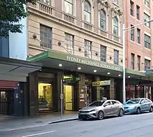 The new building served the SMSA well, providing more room for concerts and performances, larger reading rooms and reference library as well as updated facilities including new overhead gas lighting. Already "one of the most prosperous institutions in the colony...", the renovations made it even more attractive and were expected to "...bring about an increase in its membership."[7] Excavations were also proposed for the installation of an electric motor to power the School's lighting. However, after the government took over the Technical and Working Men's College and then stopped leasing the SMSA hall for the new Sydney Technical College at the beginning of 1888, the loss of income to the School meant that this work did not proceed.[16] A continuing downturn in income saw further changes made to the SMSA building in a bid to improve finances. Between 1891 and 1894 the rents received by the SMSA fell from £1670 to £439 per annum. The decision to build shops into the front of the building was taken and in 1895–96 three shops were added to the ground floor in what had been the library and committee room provided much-needed revenue for the SMSA which was otherwise in decline.[17] With falling cash reserves, by the early 1980s the SMSA found it increasingly difficult to maintain the building and began to consider selling the site.[18][19]