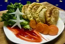 Bangladeshi cuisine (Bengali: বাংলাদেশী রন্ধনশৈলী) is the national cuisine of Bangladesh. It has been shaped by the region's history and river-line geography. The country has a tropical monsoon climate. The staple of Bangladesh is rice and fish.[1] The majority of Bangladeshi people are ethnic Bengali, accustomed to Bengali cuisine, with a minority of non-Bengalis, many used to cuisines from different traditions and regions.[2][3][4] Bangladeshi cooking features more meat dishes than the cuisine of neighbouring West Bengal, India.[5][6]