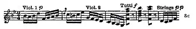 - ↑ As well as the tempi adopted by the performers, the playing time is affected by the decision to play or omit the exposition repeat in the first movement. This typically makes a difference of about 2½ minutes. Examples from the versions mentioned in the Recordings section are Klemperer and Monteux, who play the repeat and whose first movements last for 12:28 and 12:37 respectively, compared with Toscanini and Karajan, who omit the repeat and respectively take 9:57 and 9:55. The total playing time of the symphony in these four recordings is 35:49, 34:10, 29:59, and 31:09 respectively.[12]