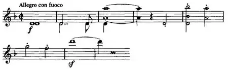 The "Dresden Amen" soon reappears on the strings and the Allegro con fuoco section, which is in sonata form, then begins. It opens as follows:
