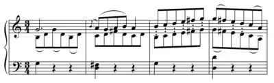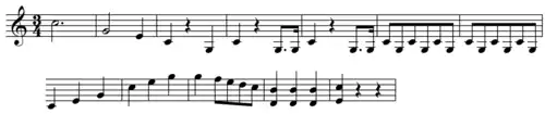 For the final eight bars of the Trio of the minuet, Haydn instructs the concertmaster ("Salomon Solo" in the score) to play an octave above the rest of the first violins.[2] Indeed, this minuet is extraordinary in Haydn's output: all of its repeats are written out because the scoring changes with each repeat.