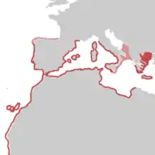 Dristribution range in Mediterranean