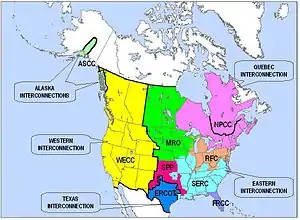 | Eastern Interconnection | Eastern US (except most of Texas) and eastern Canada (except Quebec and Newfoundland and Labrador) | 610 GW | 1380 TWh | 2017 | ||