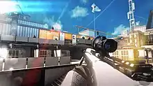 Unlike the original series of games, Syndicate is a first-person shooter set in 2069. Players assume control of Miles Kilo, an augmented agent working for EuroCorp in a corrupted, deceitful world in which corporations compete with each other for power.[1] Players can run, jump, slide, hide behind covers, and carry two weapons and grenades to defeat enemies and bosses, who each have unique abilities.[2] The game features 19 weapons,[3] ranging from assault rifles, rocket launchers and machine pistols, to futuristic weapons such as laser rifles, Gauss Guns with bullets that can track enemies automatically, and Riotlance Dark Shooters that can paralyze enemies for a short time.[4] Weapons can be customized and upgraded with 87 attachments and 25 upgrade options.[5] These upgrades may alter the nature of these weapons, transforming standard ammunition to cover-penetrating ammunition.[6] The game also features an "execution" mechanic, allowing players to perform melee takedowns.[7]