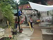 Artists and helpers setting up the exhibition - Milan - August 2, 2014