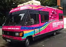 Cultural Caravan's pink van, symbol of the movement.