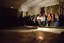 Finally, the caravan came back to Paris and participated in the Bastille Quartier Libre festive on October 11.[8] On the whole, it travelled across four countries, organised 17 events in 14 different cities and villages, including 15 exhibitions, three poetry recitals, five drama recitals, three conferences, nine film screenings, and two dance performances.